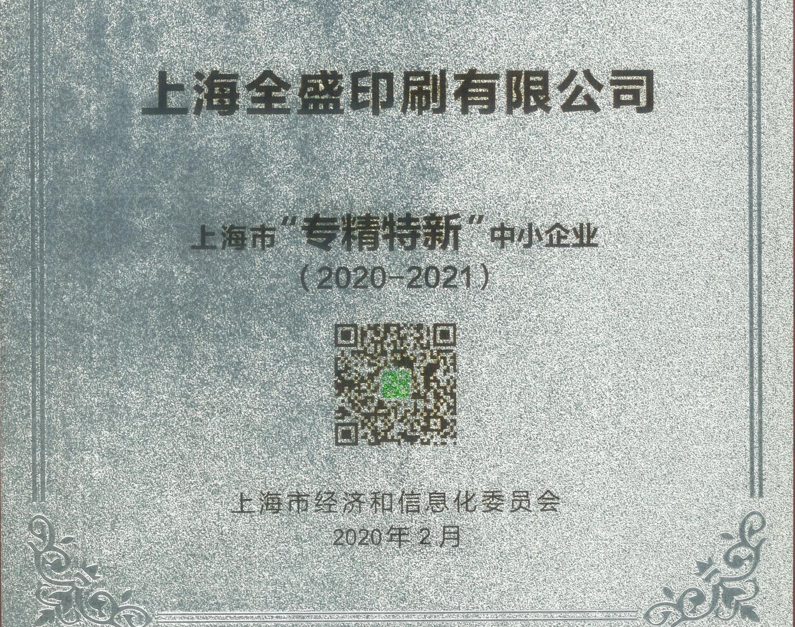 2020年2月,全盛以深邃的行業(yè)洞察力和前瞻性的戰(zhàn)略思維,引領(lǐng)企業(yè)精準定位市場,聚焦主業(yè),深耕細作,成功榮獲上海市“專精特新"中小企業(yè)。